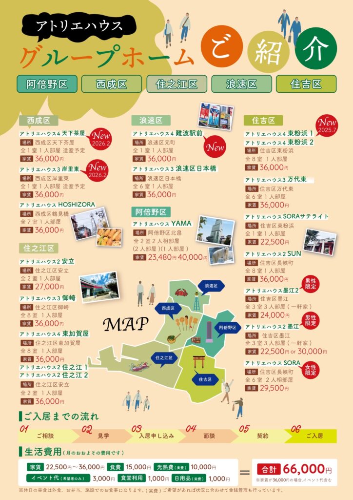 ◎ご支援内容② ご利用者様に適した住まいのご提案。(グループホームは1roomタイプから4LDK戸建タイプ迄、ご用意しております。)
